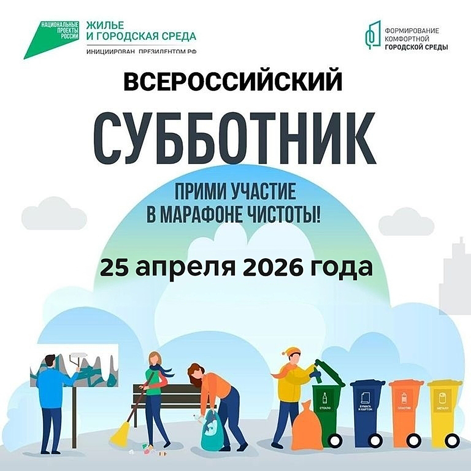 25 апреля 2026 года в 10.00 часов - Всероссийский субботник. |